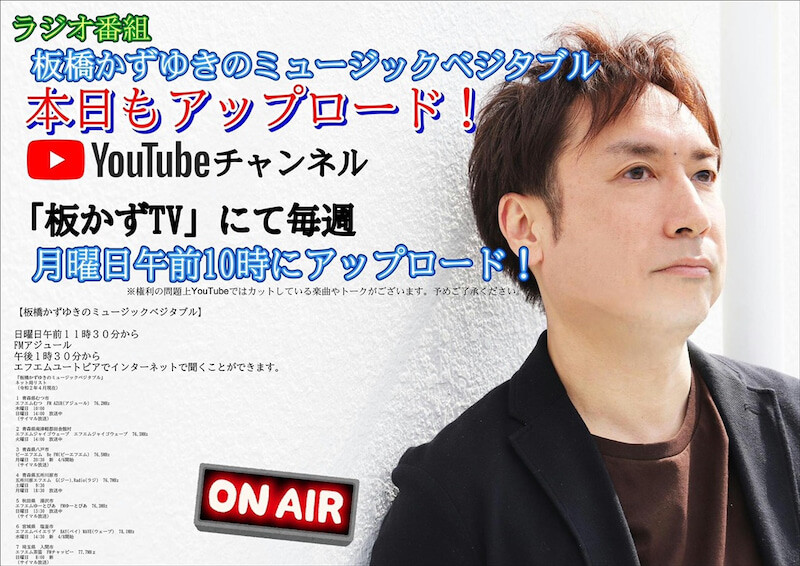 2022年12月18日 2022.12.18㈰13:30~FMゆーとぴあ(秋田県湯沢市) 14:00~FM AZUR(青森県むつ市)「板橋かずゆきのミュージックベジタブル」電話ゲスト出演 皆様、おはようございます!早速ですが、本日18日㈰13:30~秋田県湯沢市 FMゆーとぴあ「板橋かずゆきのミュージックベジタブル」に電話ゲスト出演させて頂きますので、ぜひ、聴いてくださいね\(^o^)/📻続いて14:00~青森県むつ市FMむつ FM AZUR「板橋かずゆきのミュージックベジタブル」にも電話ゲスト出演させて頂きますので、こちらの方も聴いてくださいね💕サイマル放送なので、全国でお聴き頂けます。 タグ :#おはようございます#板橋かずゆきのミュージックベジタブル#FM#AZUR#FMむつ#FMゆーとぴあ#電話ゲスト出演#秋田県#青森県#サイマル放送